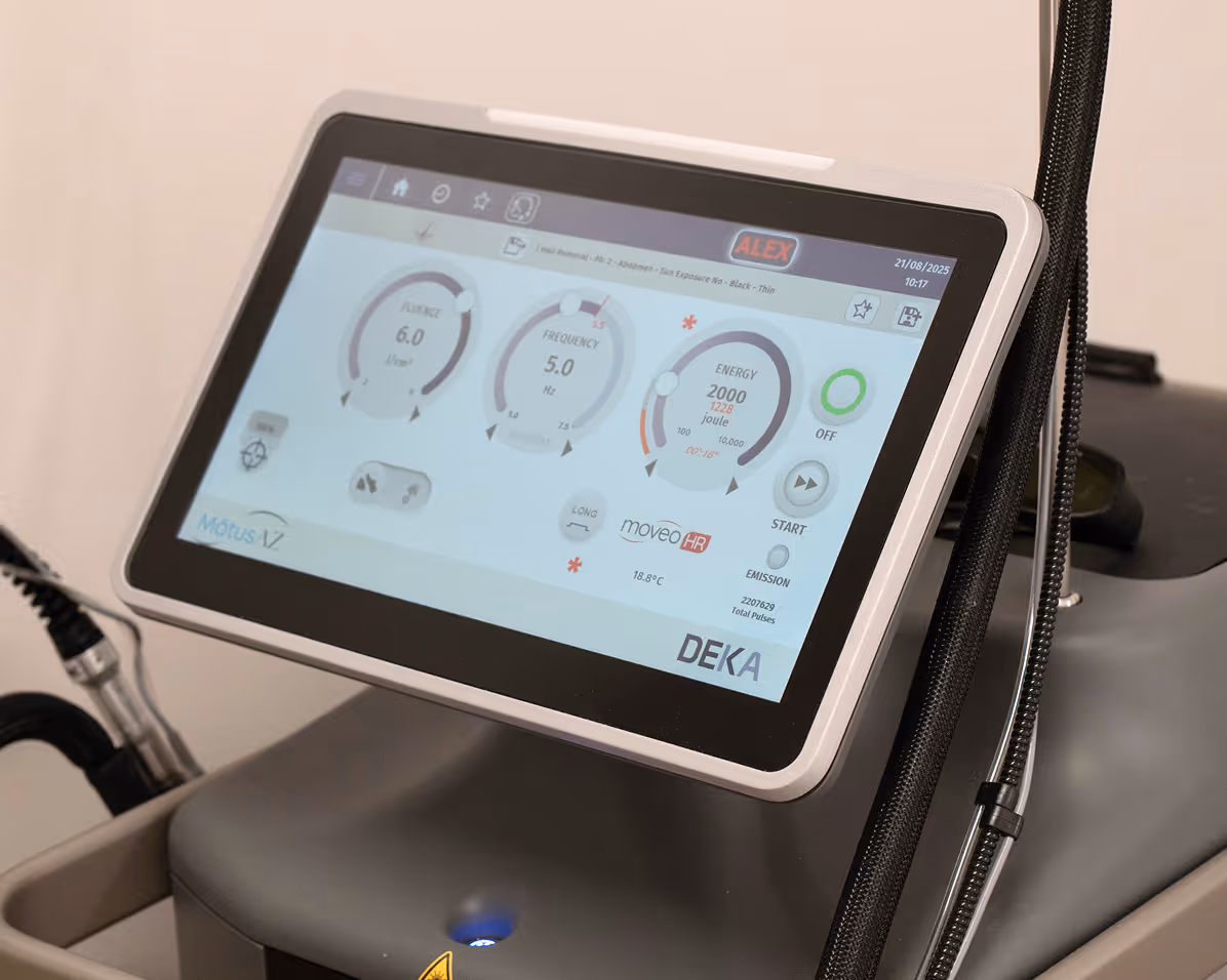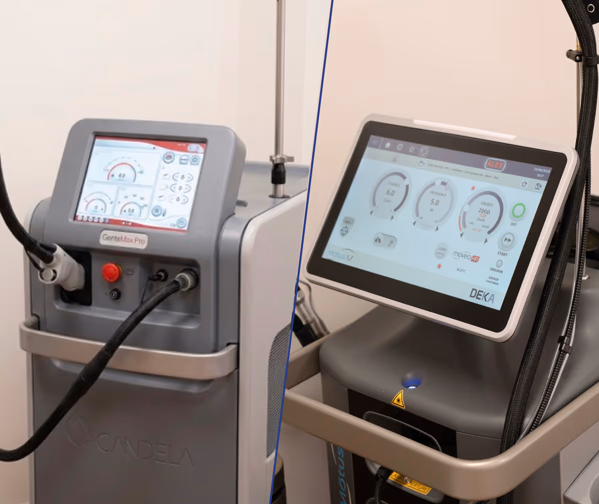 At our Med Spa, we believe you shouldn't have to compromise between comfort and results. Both the DEKA Motus AZ Moveo and the Candela GentleMax Pro are world-class, highly effective Alexandrite lasers. While both deliver flawless, permanent hair reduction, they each have unique ‘superpowers’. Having both of these industry-leading systems in our arsenal allows us to offer the ultimate premium laser hair removal in Chicago - a truly bespoke experience where we mix and match technologies during a single visit.